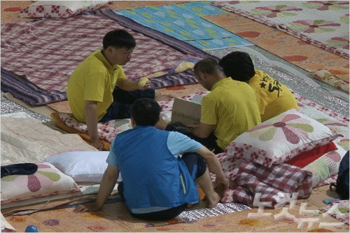 ▶ 기도하는 것도 지쳤다..."가슴이 썩어버렸다"지난 23일 텅 비다시피한 진도체육관에서 만난 단원고 2학년 허다윤 양의 아버지는 세월호 참사 당일부터 지금까지 진도를 떠나지않고,막내 딸이 돌아오기만을 기다리고 있다.