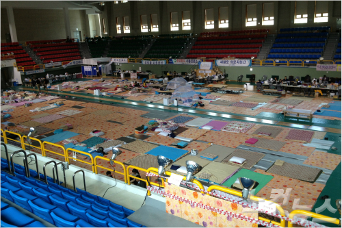 사진은 세월호 참사 발생 100일을 맞은 진도체육관 모습.