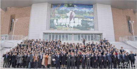 한국기독실업인회가 지난 24일 충남 논산 육군훈련소에서 4천 5백여 명의 군 장병들을 대상으로 진중세례식을 가졌다. 사진은 기독실업인회 관계자들이 연무대군인교회 새예배당에서 포즈를 취하는 모습.