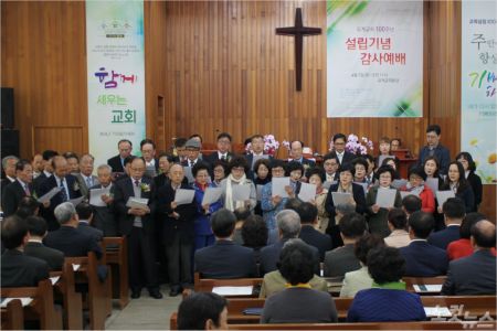 김도환 목사 등 역대 시무목사를 비롯해 지역 교계인사와 출신 교인, 성도 등 200여 명이 참석한 가운데 드려진 감사예배는 1부 예배와 2부 축하 및 인사, 3부 식사 및 교제 순으로 진행됐다.