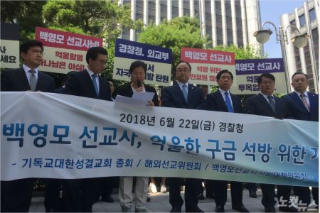 기독교대한성결교회 관계자들은 기자회견을 마친 뒤 백영모 선교사가 명백한 셋업 범죄의 피해자라며 백선교사의 석방을 위한 탄원서를 경찰청에 전달했습니다.