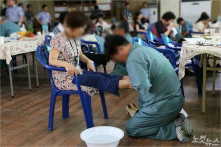 이날 수료식에선 수용자들이 직접 가족들의 발을 씻겨주는 세족식도 진행됐습니다.