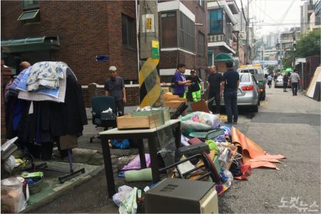 지난 28일부터 계속된 집중호우로 서울 은평구 응암3동 일대 피해가 컸다. 사진은 30일 피해 복구에 나서고 있는 주민들 모습.