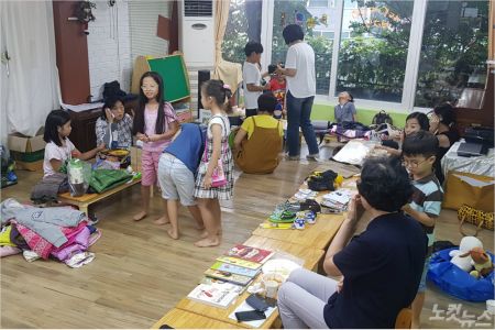 아이들이 좋아하는 이 작은 바자회는 교회와 서울시가 협력해 운영하는 공동육아 프로그램 '엄마랑 아가랑' 활동 중 하나입니다.