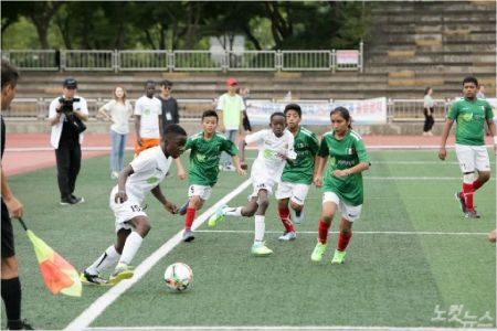 작은 축구공을 쫓아 푸른 잔디밭을 힘차게 누비는 아이들. 국적과 피부색은 달라도 모두의 얼굴엔 환한 미소가 가득합니다.