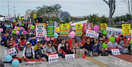 신천지가 위장 평화 이벤트를 진행하는 사이 주경기장 밖에서는 신천지 피해가족들의 신천지 반대 시위가 이어졌다.