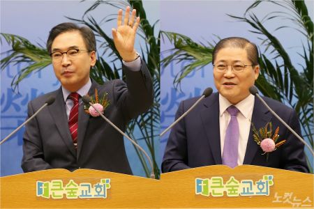 경동노회 제150회 기념 연합집회에는 총회장 이승희 목사(좌)와 소강석 목사(우)가 강사로 나섰다. (포항CBS)