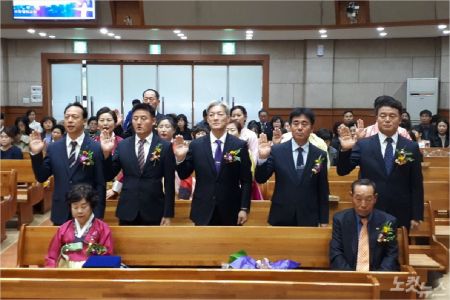 이 자리에서는 정주현 장로가 원로장로로 추대됐으며, 권영익, 박용규 등 장로 2명을 비롯해 안수집사 4명, 권사 7명이 임직 및 취임했다.