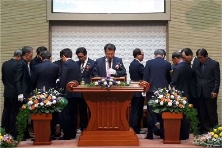 유원식 담임목사의 인도로 드려진 1부 예배는 장성표 목사(포항동일교회)의 기도, 남시찰장 신택섭 목사(모포교회)의 성경봉독, 시온찬양대 찬양에 이어 전 노회장 김원주 목사(포항소망교회)가 삼상 10:22~24을 통해 '하나님이 기뻐하시는 일꾼'이라는 제목으로 말씀을 전했다.