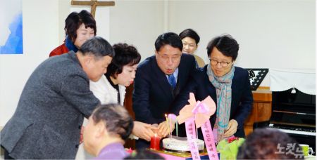 4일 YWCA강당에서, 광주기독 4단체 대표들이 새해을 감사하며 촛불을 끄고 있다.(사진=광주CBS 정창원)