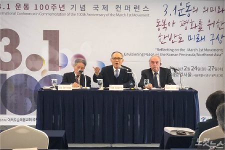 3.1 운동 100주년 기념 국제 컨퍼런스에 참석한 윤경로 교수는 3.1 운동을 3.1 혁명으로 바꾸자고 제안했다.