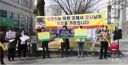 지난 7일, 전남대학교 후문에선 신천지 피해 부모들의 신천지 규탄집회가 열렸다.