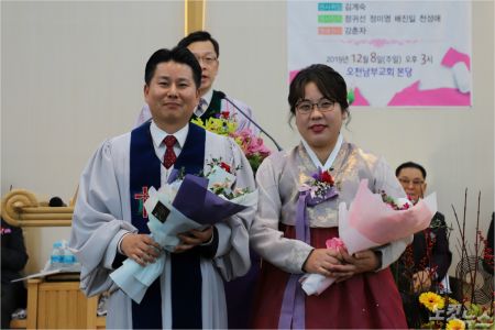 오천남부교회 담임목사로 위임받은 김정동 목사와 임유미 사모 (사진=포항CBS)