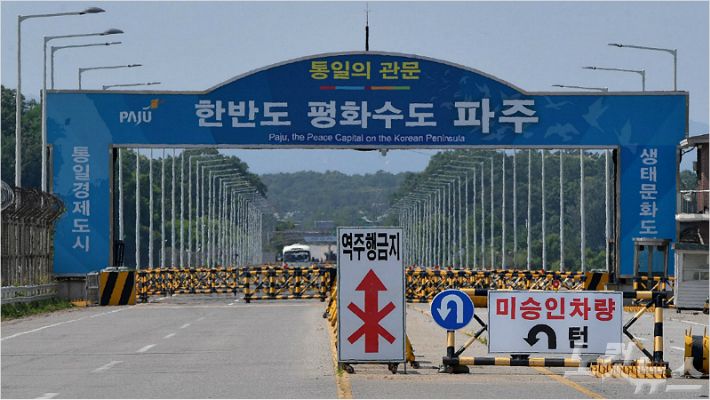 북한이 대남 무력시위를 공식화하는 등 한반도 긴장이 고조되는 가운데 14일 경기 파주시 통일대교에 적막감이 흐르고 있다. 박종민기자