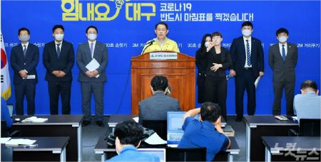 22일 대구시가 이단 신천지를 상대로 제기한 민사소송 관련 브리핑을 진행하고 있다. (사진=대구시 제공)