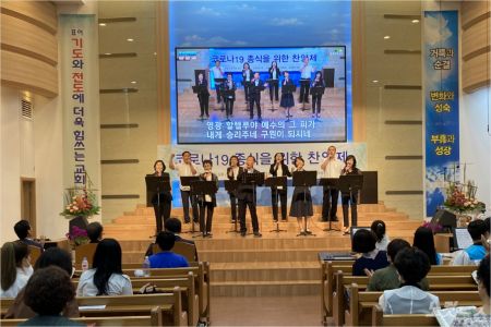 이날 찬양제는 코로나19 확산 방지를 위해 발열체크와 손 소독, 출입자 관리등 방역지침 준수 속에 진행됐다.