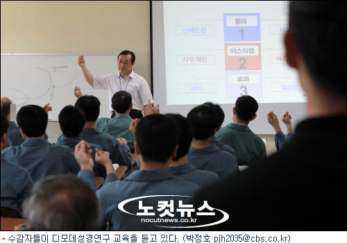 수감자 내면 변화 이끄는 프로그램 돋보여성경의 역사를 공부하는 시간. 60여명의 수감자들이 강의실에 모였다. 강사의 설명을 유심이 듣기도 하고 ''바리새인'' ''사두개인'' 등 등장인물을 큰 소리로 따라하기도 한다. 강의에 임하는 수감자들의 태도가 진지해보였다. ''목적이 이끄는 삶'' 등 각 요일별로 다양한 프로그램이 이어진다.